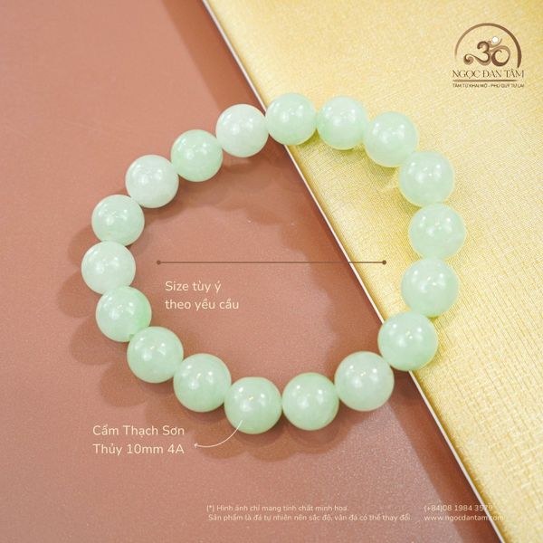 Xuất xứ: Myanmar Đá: Cẩm Thạch Sơn Thủy thiên nhiên (Jadeite) loại 4A Size hạt: 10mm tròn đều Chất liệu dây: Dây co giãn cao cấp, bền đẹp Mệnh phù hợp: Dành cho tất cả các mệnh