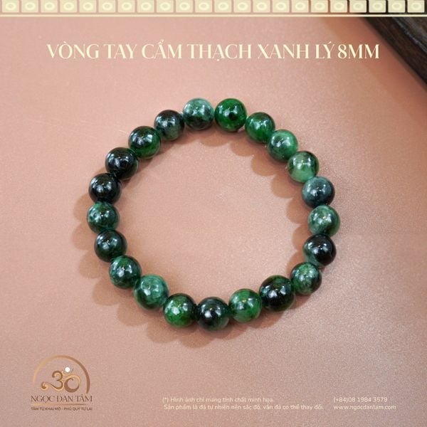 VÒNG TAY CẨM THẠCH XANH LÝ 8MM - VIÊN NGỌC QUÝ CỦA SỰ PHÚC LỘC & TRƯỜNG THỌ