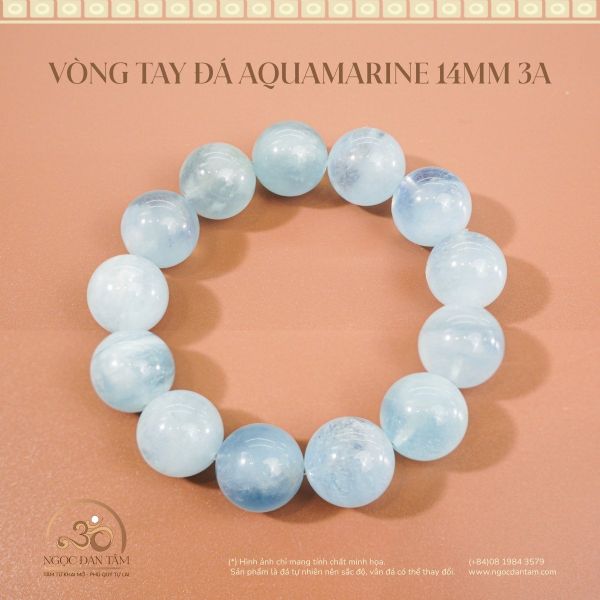 VÒNG TAY AQUAMARINE 14MM 3A - VIÊN ĐÁ CỦA BIỂN CẢ & AN YÊN