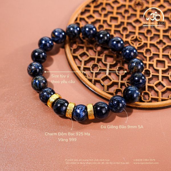 Xuất sứ: Namibia, Trung Quốc Đá: Đá Giông Bão tự nhiên 100% Charm bạc 925 mạ vàng 999 sang trọng Size hạt: Hạt tròn 9mm Chất liệu dây: Dây co giãn cao cấp, bền chắc Mệnh phù hợp: Mệnh Thủy, Mệnh Mộc
