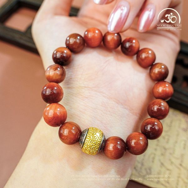 Vòng Tay Đá Mắt Hổ Nâu Đỏ 10mm 5A Phối Charm Tường Vân