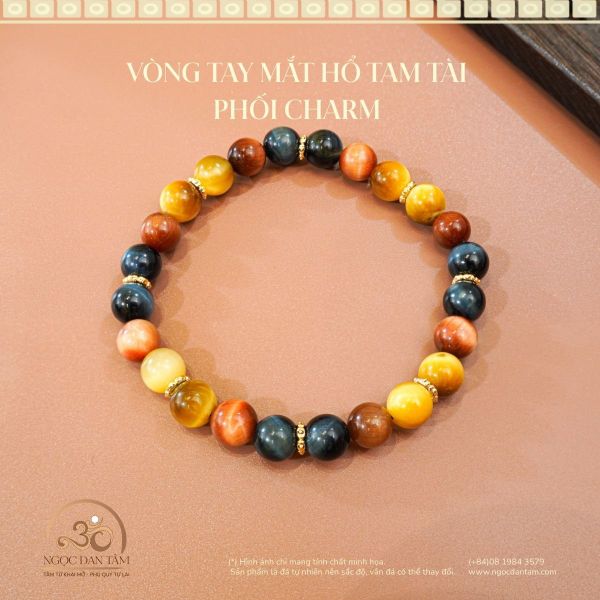 Vòng Tay Đá Mắt Hổ Tam Tài 8mm 5A Phối Charm (1)