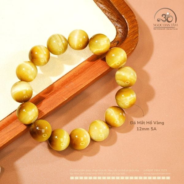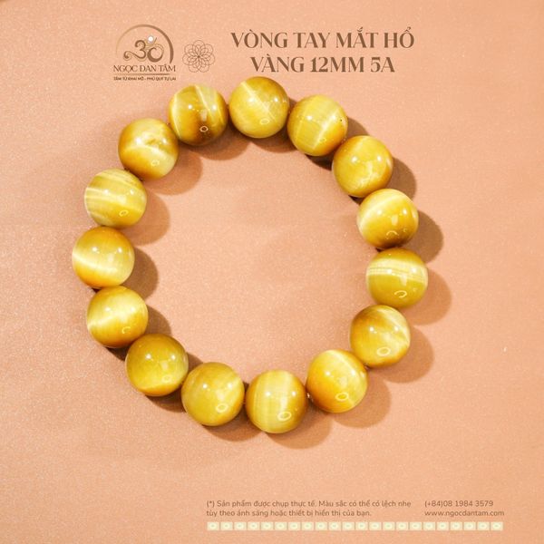 Vòng Tay Đá Mắt Hổ Vàng 12mm 5A