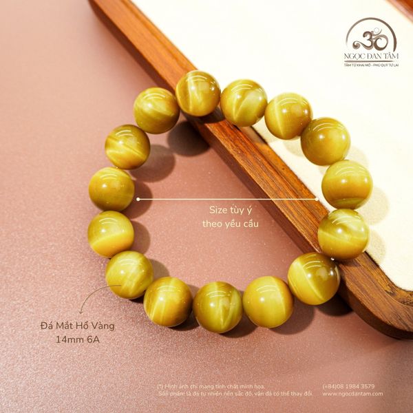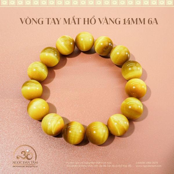 Vòng Tay Đá Mắt Hổ Vàng 14mm 6A