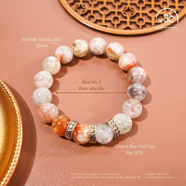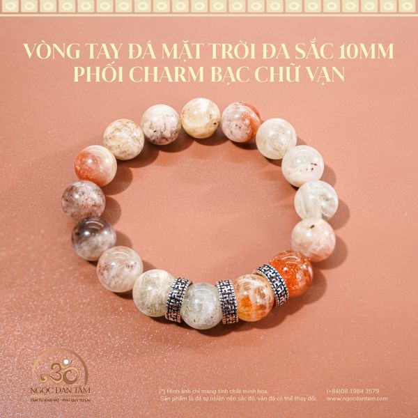 Vòng Tay Đá Mặt Trời Đa Sắc 10mm Phối Charm Bạc Chữ Vạn
