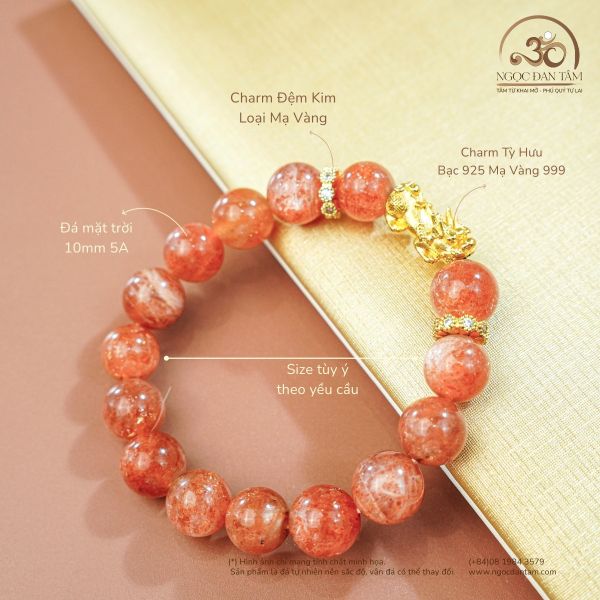 Vòng Tay Đá Mặt Trời 10mm 5A Phối Charm Tỳ Hưu