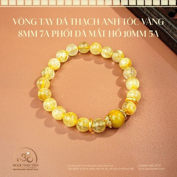 Vòng Tay Đá Thạch Anh Tóc Vàng 8mm 7A Phối Đá Mắt Hổ 10mm 5A