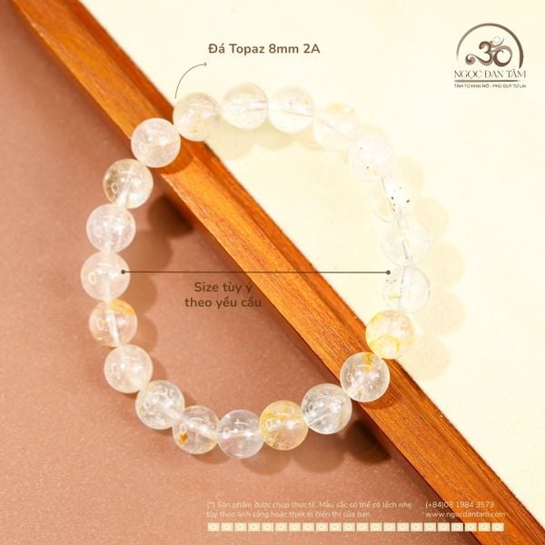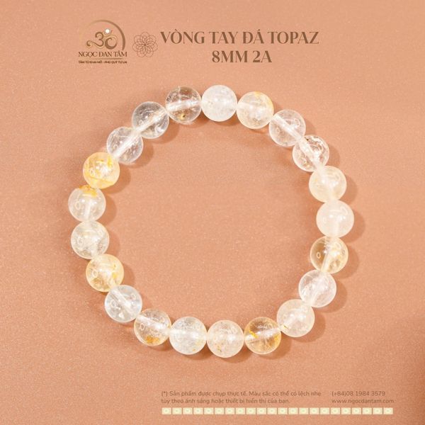 Chất liệu: Topaz tự nhiên Cấp độ chất lượng: 2A Hạt đá: Tròn 8mm Xuất xứ đá: Brazil Phong cách: Tinh tế - thanh thoát - hiện đại Mệnh phù hợp: Mệnh Kim, Mệnh Thổ Luân xa kích hoạt: Luân xa 3 (Thái dương)