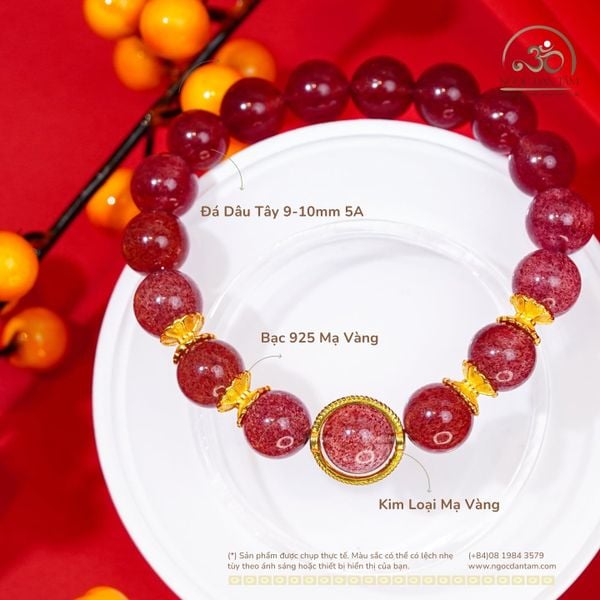 Vòng Tay Dâu Tây 9-10mm 5A Phối Charm Bọc Đá