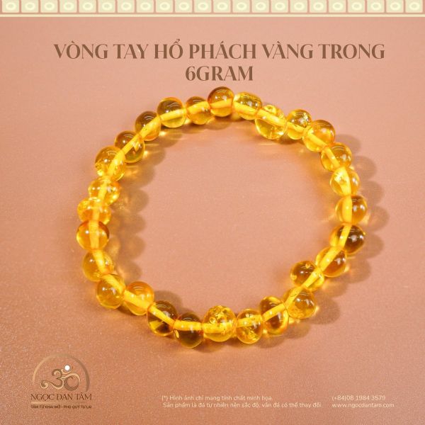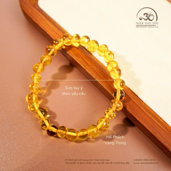 Vòng Tay Hổ Phách Vàng Trong 6gram