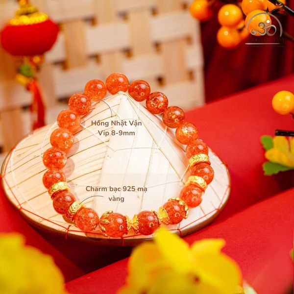 Vòng Tay Hồng Nhật Vận VIP 8-9mm phối charm