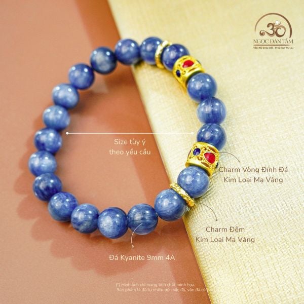 Vòng Tay Kyanite 9mm 4A Phối Charm Mạ Vàng