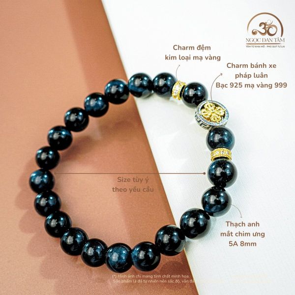 Vòng Tay Thạch Anh Mắt Chim Ưng 8mm 5A Phối Charm Bánh Xe Pháp Luân