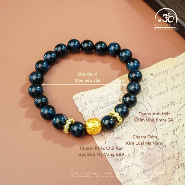 Vòng Tay Thạch Anh Mắt Chim Ưng 8mm 5A Phối Charm Chữ Vạn