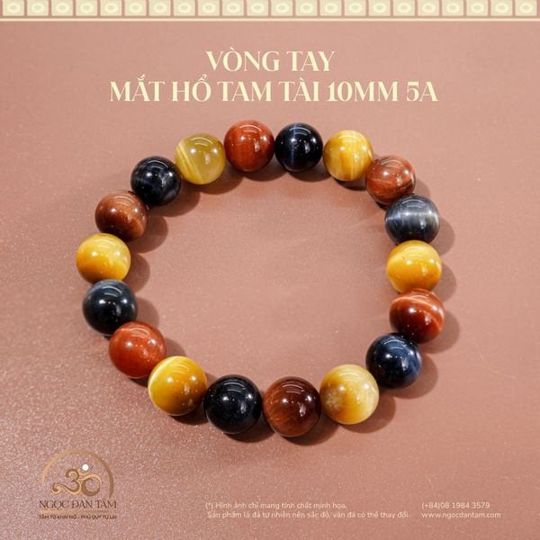 Vòng Tay Mắt Hổ Tam Tài 10mm 5A