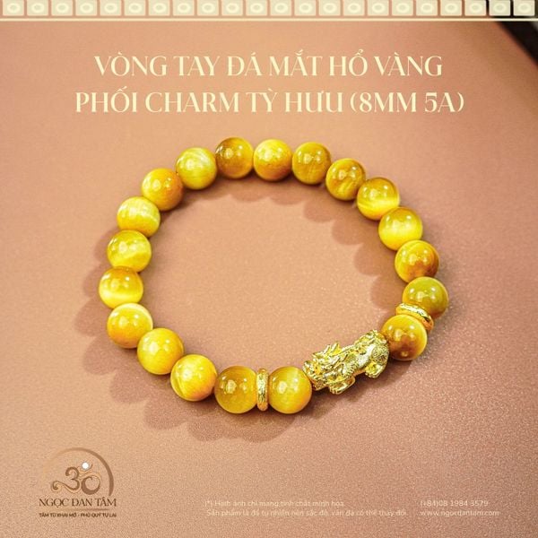 Vòng Tay Mắt Hổ Vàng Phối Tỳ Hưu 8mm 6A