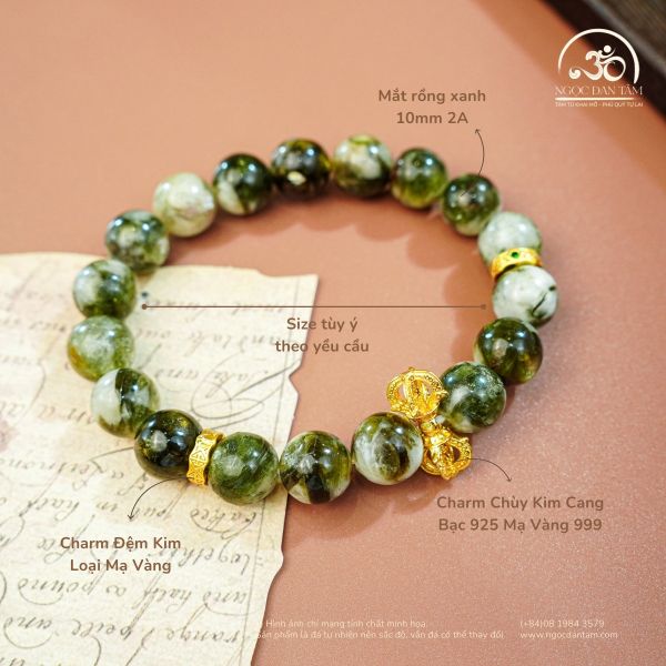 Vòng Tay Mắt Rồng Xanh Phối Charm Chùy Kim Cang 10mm 2A