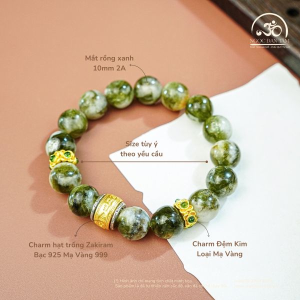 Vòng Tay Mắt Rồng Xanh Phối Charm Hạt Trống Zakiram 10mm 2A