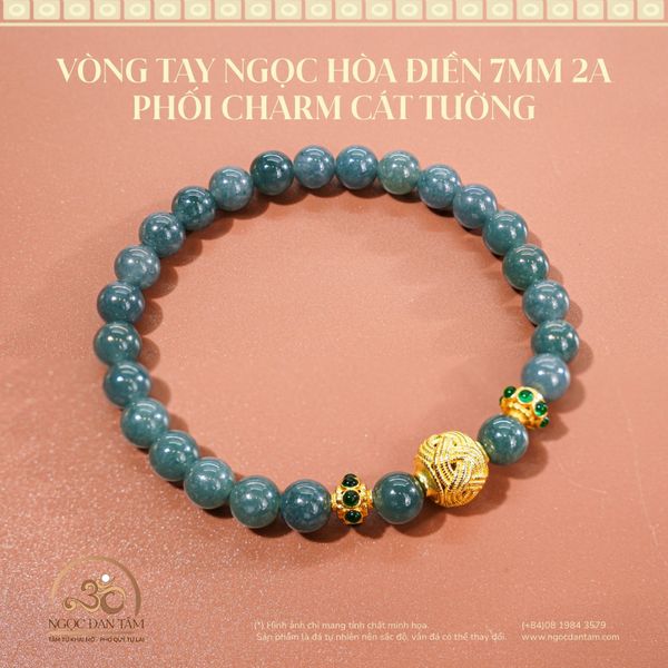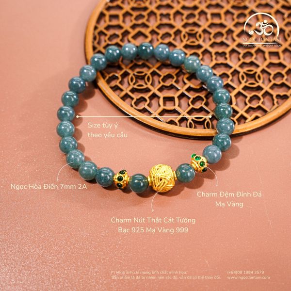 Vòng Tay Ngọc Hòa Điền Cát Tường được chế tác từ hạt ngọc tự nhiên size 7mm, kết hợp cùng charm bạc nút thắt Cát Tường - biểu tượng của sự viên mãn và bền chặt. Điểm nhấn charm đệm đính đá càng làm nổi bật vẻ sang trọng, tinh tế, biến chiếc vòng trở thành món trang sức phong thủy đầy cuốn hút, phù hợp cho cả nam và nữ.