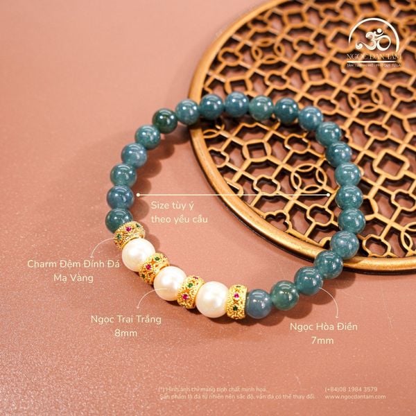Vòng Tay Ngọc Hòa Điền Phối 7mm 2A Ngọc Trai Trắng 8mm