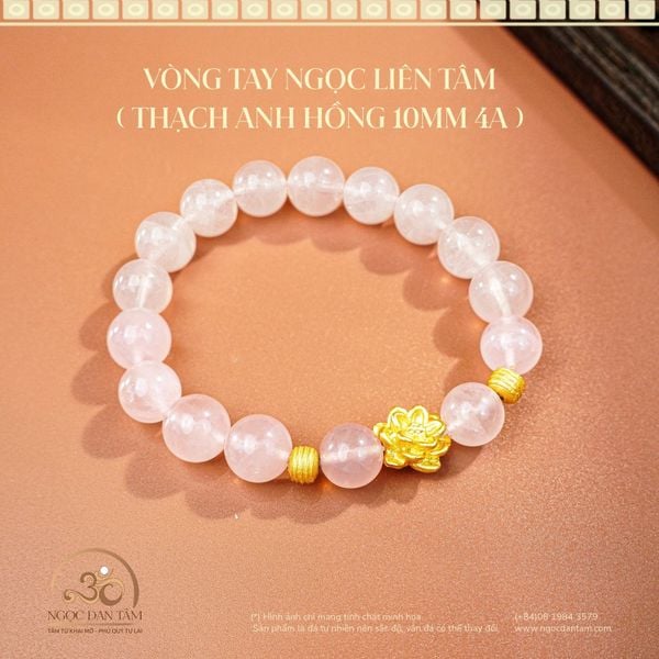 Vòng Tay Ngọc Liên Tâm ( Thạch Anh Hồng 10mm 4A )