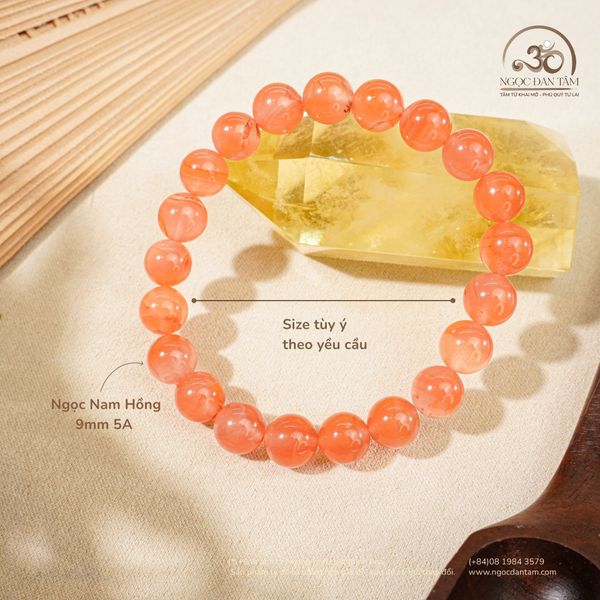 Ngọc Nam Hồng là viên ngọc mang sắc cam hồng dịu ngọt được ví như ánh hoàng hôn rơi trên mặt nước, vừa ấm áp vừa trong trẻo. Vòng tay Ngọc Nam Hồng 9mm là lựa chọn lý tưởng cho những ai đang tìm kiếm một thiết kế vừa nhẹ nhàng, nữ tính nhưng vẫn đủ nổi bật và thu hút. Kích thước hạt 9mm mang lại cảm giác chắc tay, tôn lên cổ tay sáng mịn và phù hợp với nhiều phong cách từ hiện đại, tối giản đến bohemian mềm mại.