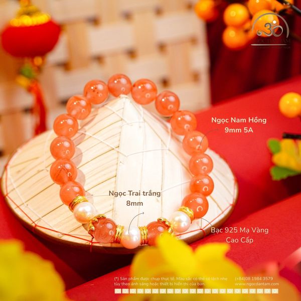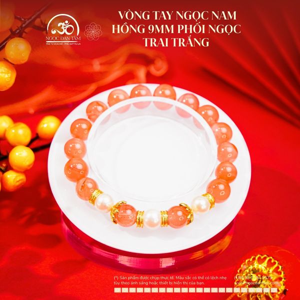 Vòng Tay Ngọc Nam Hồng 9mm Phối Ngọc Trai Trắng 8mm