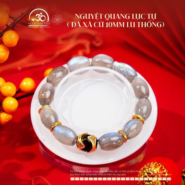 Vòng Tay Nguyệt Quang Lục Tự ( Đá Xà Cừ Lu Thống 10mm Phối Charm )