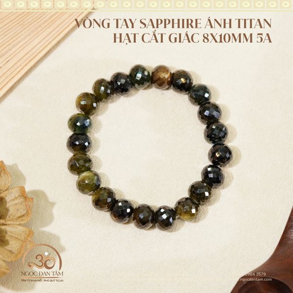Vòng Tay Sapphire Ánh TiTan Hạt Cắt Giác 8x10mm 5A
