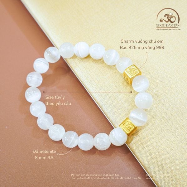 Vòng Tay Selenite 8mm 3A Phối Charm Chú Om