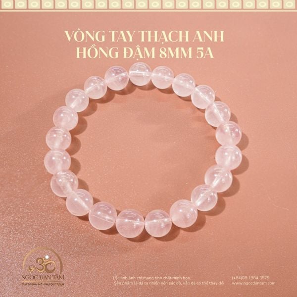 Vòng Tay Thạch Anh Hồng Đậm 8mm - 10mm 5A