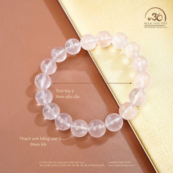 Mỗi hạt đá được tuyển chọn từ Thạch Anh Hồng thiên nhiên chất lượng 6A cao cấp, có độ trong và ánh sao rõ rệt, tạo nên một chiếc vòng tay sang trọng, đẳng cấp và giàu năng lượng tích cực. Đây là món trang sức lý tưởng dành cho những ai mong cầu tình duyên, hạnh phúc và sự bình an trong tâm hồn.