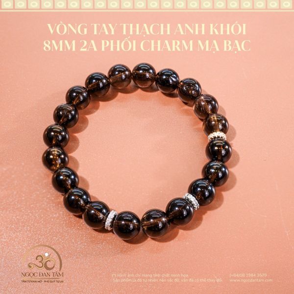 Vòng Tay Thạch Anh Khói 8mm 2A Phối Charm Mạ Bạc