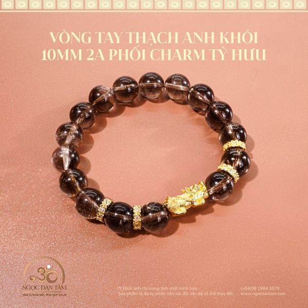 Vòng Tay Thạch Anh Khói 10mm 2A Phối Charm Tỳ Hưu