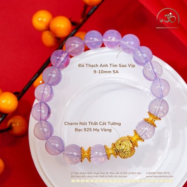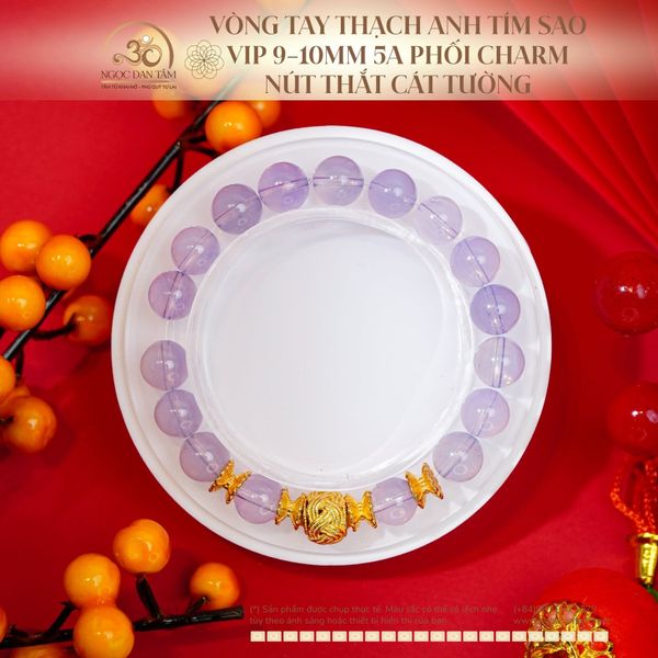Vòng Tay Thạch Anh Tím Sao Vip 9-10mm 5A Phối Charm Nút Thắt Cát Tường