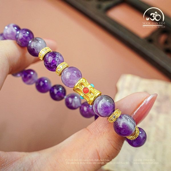 Vòng Tay Thạch Anh Tím Vân Mây 8mm 2A Phối Charm Lu Thống 2 màu