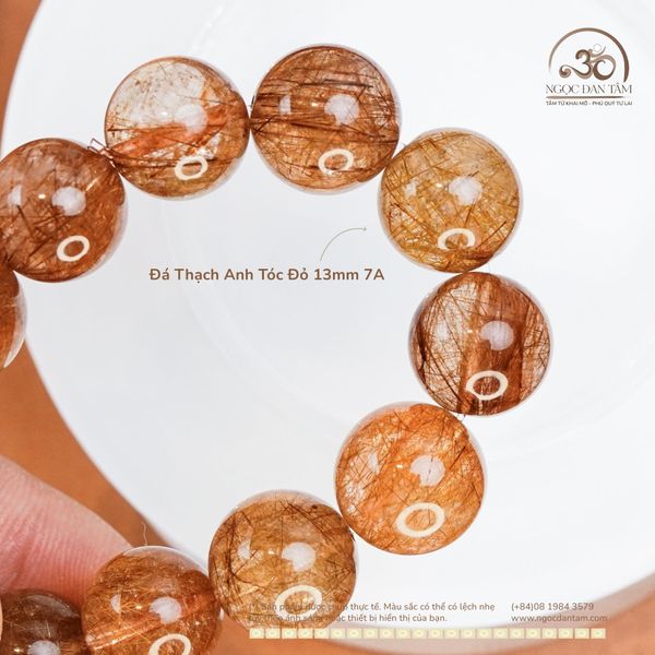 Vòng Tay Thạch Anh Tóc Đỏ 13mm 7A