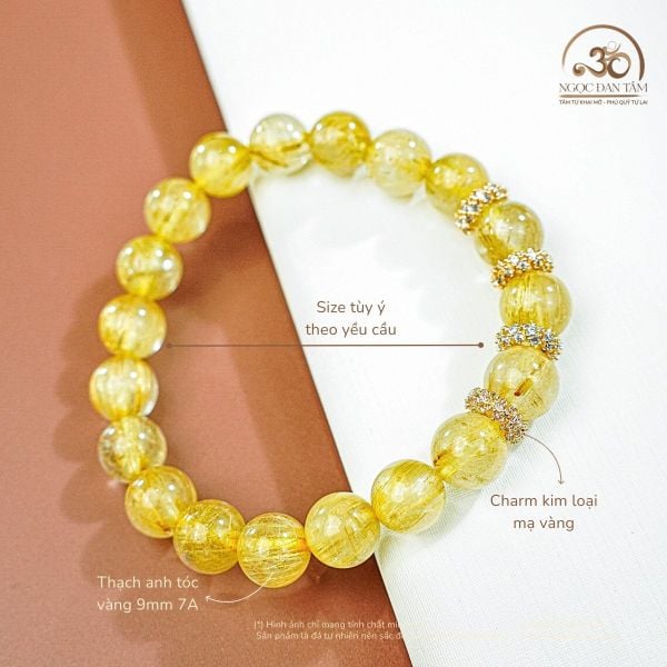 Vòng Tay Thạch Anh Tóc Vàng 9mm 7A Phối Charm Mạ Vàng