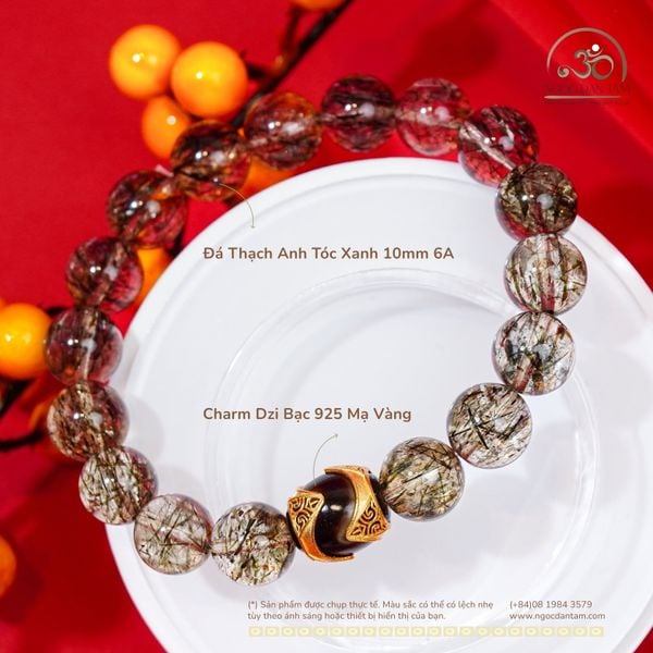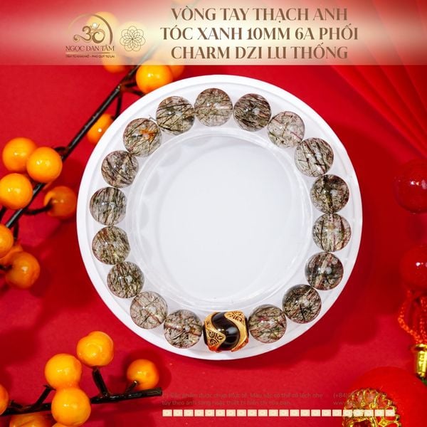 Vòng tay Thạch Anh Tóc Xanh 10mm 6A Phối Charm Dzi Lu Thống