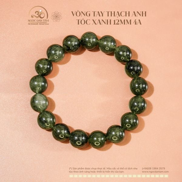 Vòng Tay Thạch anh tóc xanh 12mm 4A