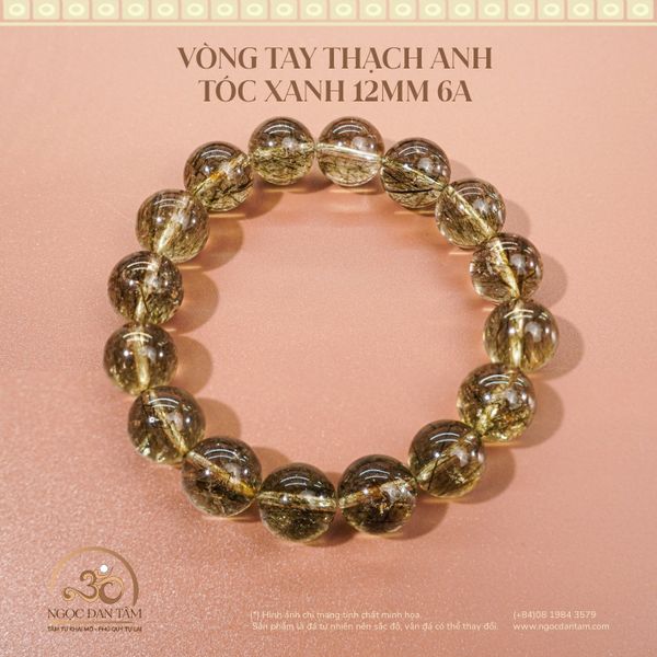 Vòng Tay Thạch Anh Tóc Xanh 12mm 6A