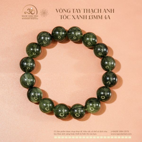 Vòng Tay Thạch anh tóc xanh 13mm 4A