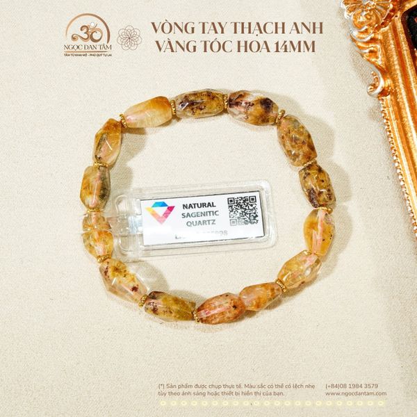 Vòng Tay Thạch Anh Vàng Tóc Hoa 14mm
