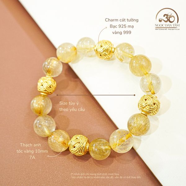 Vòng Tay Tóc Vàng 10mm 7A Phối Charm Cát Tường