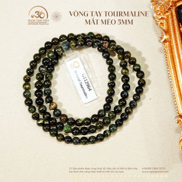 Vòng Tay Tourmaline Mắt Mèo 5mm