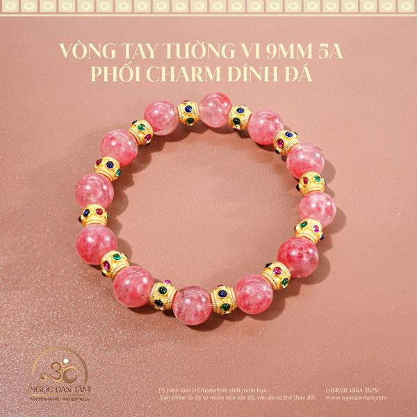 Vòng Tay Tường Vi 9mm 5A Phối Charm Đính Đá